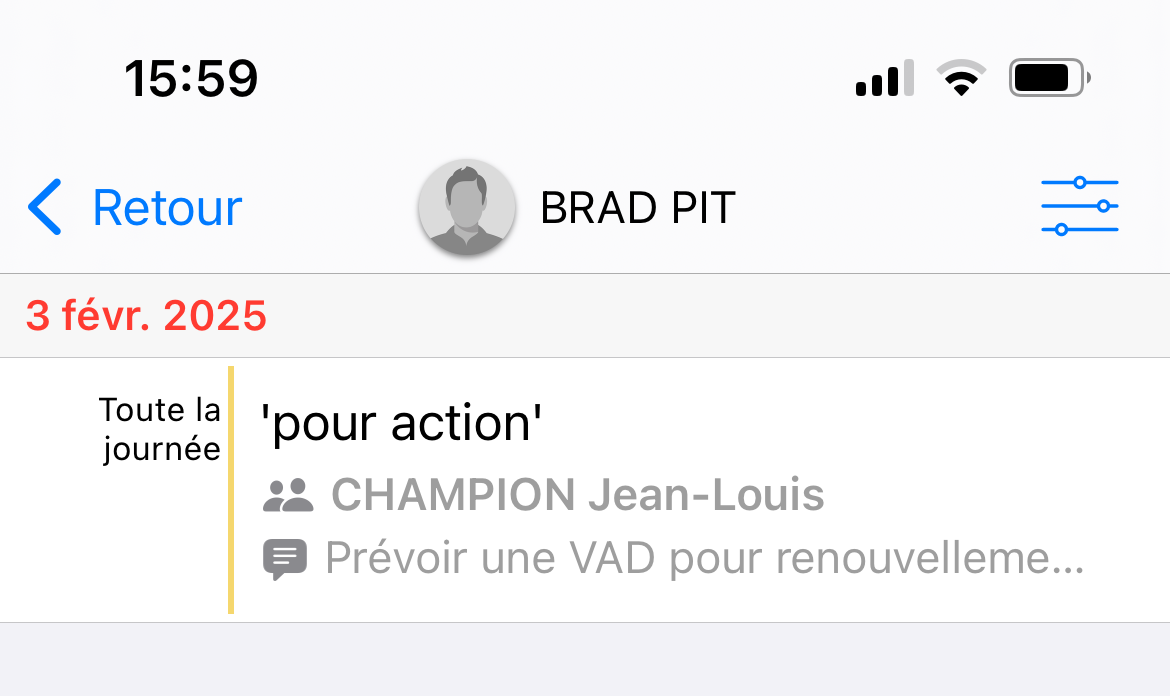 Comme tout autre note, elle est visible à l'ensemble des intervenants éligibles à la confidentialité de la note et un éclair clignote sur l'écran du destinataire ciblé par l'action.