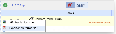 Depuis la fonction "Documents", le compte-rendu peut être exporté en PDF et envoyé dans le DMP.
