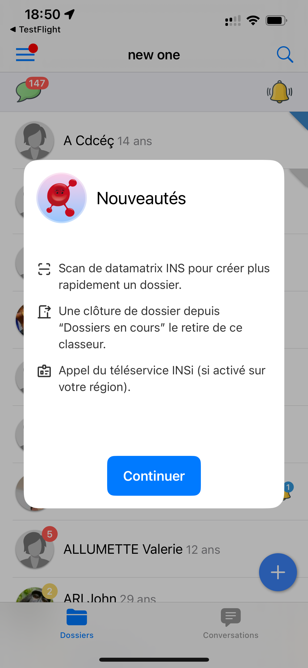 Voici par exemple le panneau des nouveautés affiché aux utilisateurs dès leur première connexion suite à la mise à jour de l'app iOS (version 7.16.0)