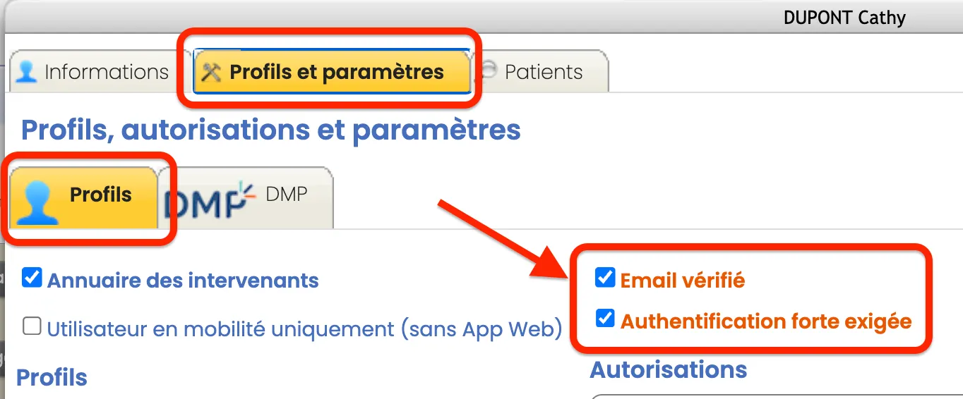 Dans l’onglet “Profils et paramètres / Profils”, cochez “ Email vérifié”.