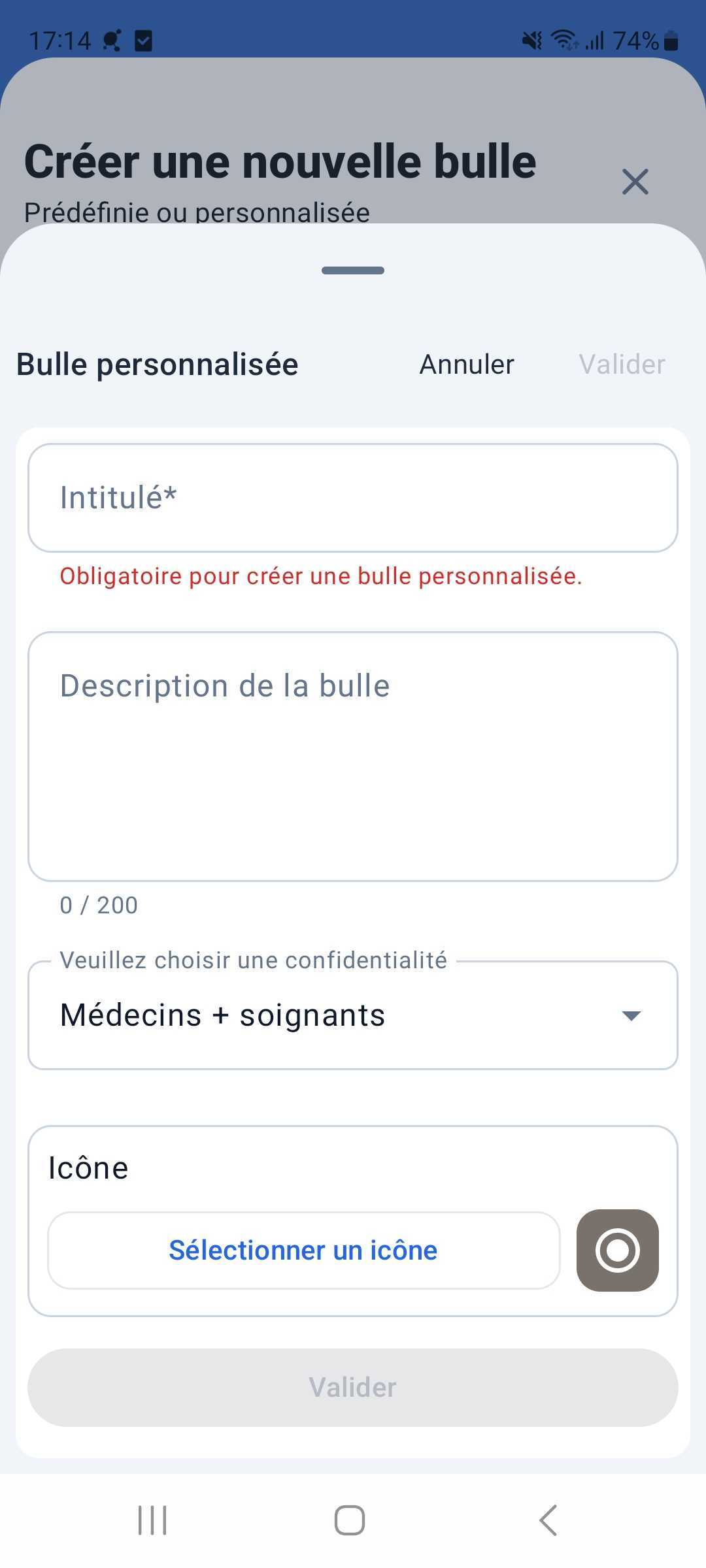 Un professionnel ne voit que les Bulles dont la confidentialité correspond à son profil.
