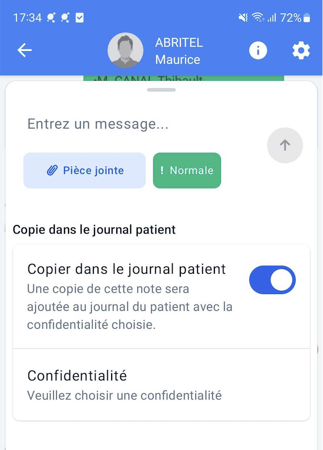 Copier dans le journal patient